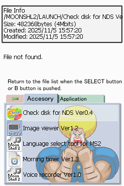 Place the SD card back into your cart, and launch Moonshell 2.